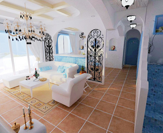 地中海風(fēng)格的家庭設(shè)計(jì)中,家具多是采用色彩簡單,線條簡潔,邊幅渾圓的木質(zhì)家具,盡顯自然。地面多以赤陶或石板為主,更具古樸風(fēng)情。對于地中海風(fēng)格家居特點(diǎn),裝飾元素多采用小石子、陶瓷類、瓷磚、貝類及玻璃制品等,切割后可隨意組合。簡潔素雅的小花格子圖案是地中海主要的風(fēng)格,造型獨(dú)特的鐵藝裝飾品及家具也是地中海這個(gè)沿海地段所特有的產(chǎn)物,而且,爬藤類植物在地中海家居設(shè)計(jì)中是極其常見的,走進(jìn)地中海風(fēng)格的家具中,隨處可見一盆盆可愛的綠色盆栽擺放其中,藤蔓類植物以其本身的攀爬特點(diǎn),潛移默化中造就了居室內(nèi)別具一格的裝修風(fēng)格。這種獨(dú)特的裝修方式是地中海區(qū)域外家居設(shè)計(jì)中所不具有的。