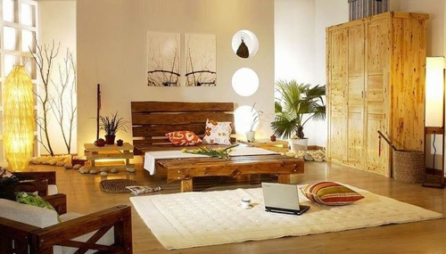 中式田園風(fēng)格在色彩的搭配及選材上也是很有講究的,以金黃色為主要基調(diào),搭配盆栽的綠色或彩色,陶瓷器的棕黃色、土黃色或紅棕色。無論是家具陳設(shè)還是工藝品、裝飾、擺設(shè)等,選材多為木、竹、藤、石、織物等天然材料。針對(duì)這種風(fēng)格的家居設(shè)計(jì),最為明顯的特征就是家具的洗白處理以及大膽的配色。對(duì)家具做洗白處理可使家具流露出天然的紋理及雋永質(zhì)感,大自然的色彩本來就不是單一的,木制家具所表現(xiàn)處的自然色彩搭配些或明亮或深沉的紅色,脆嫩的綠色以及亮藍(lán)色,則可以使室內(nèi)的風(fēng)格更貼近自然。
