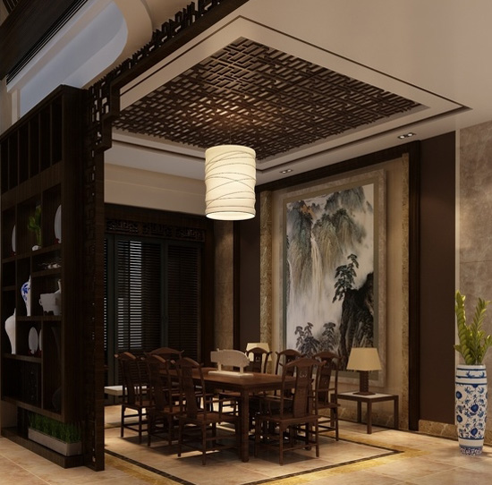 天花板:在中式田園風(fēng)格中,對(duì)天花板的設(shè)計(jì)簡(jiǎn)約而不失風(fēng)雅??梢允沁x用木條交織成方形、八角形、環(huán)形、方格形等各種形狀,上覆木板即成為線條簡(jiǎn)單,色調(diào)素雅的燈池吊頂。當(dāng)然,除了這種簡(jiǎn)易的天花,也可以選擇能工巧匠精雕細(xì)琢出來(lái)的帶有多姿多彩、傳統(tǒng)吉祥圖案的天花,線條優(yōu)美,令人浮想聯(lián)翩,極具中國(guó)特色。