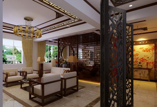 屏風(fēng):屏風(fēng)是突出中式風(fēng)格家具的代表性家具,在中式田園風(fēng)格中自然也會(huì)有它的身影。屏風(fēng)造型多樣,種類不也有所不同,其中包括擋屏、實(shí)木雕花、黑色描金屏風(fēng)、手工描繪花草屏風(fēng)、也有雕刻吉祥圖案的屏風(fēng)和拼圖畫板結(jié)合成的屏風(fēng),圖案和樣式多種多樣,色彩搭配分明。常用于做餐廳間隔或擺放在客廳內(nèi),散發(fā)出了寧?kù)o、雅致的田園氣息。