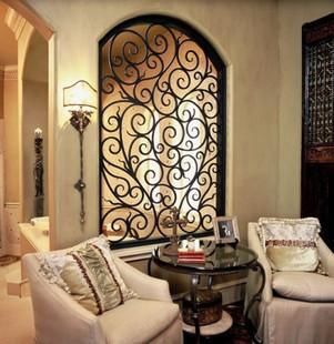 對(duì)于法式田園風(fēng)格的搭配來(lái)說(shuō),鐵藝和布藝是很重要的元素。風(fēng)水學(xué)上講,忌諱進(jìn)門便能看的屋內(nèi)全景,玄關(guān)的設(shè)計(jì)是很有必要的。選擇鐵藝玄關(guān)既可以起到阻隔視線的作用,又可以做到起到裝飾房間的作用。而布藝呢,可營(yíng)造小清新的田園氣氛。在選擇時(shí),客廳內(nèi)的窗簾和沙發(fā)顏色、花色及質(zhì)感要能相呼應(yīng),與此同時(shí),沙發(fā)的布藝與墻面的色彩也要能相輔相成,這樣營(yíng)造的處的風(fēng)格和氣氛才能相互和諧。