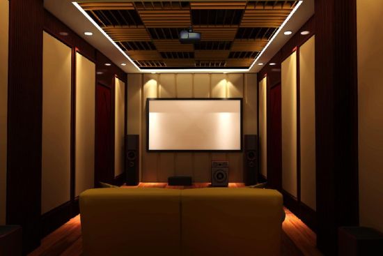 燈光設計在家庭影院裝修裝飾中也是十分重要的,要以黃色等暖色調(diào)為主打,如果是車庫或地下室改作家庭影院,在墻面上可部分或全面應用軟包設計,要視空間的混響時間等需求而定,另一部分可以實現(xiàn)自己的理想設計表面或飾品飾物。在沙發(fā)上,最好選擇布藝型,并鋪上地毯,一般房間設計家庭影院時,在窗戶上要設計厚窗簾,這些對取得很好的視聽效果非常有用。