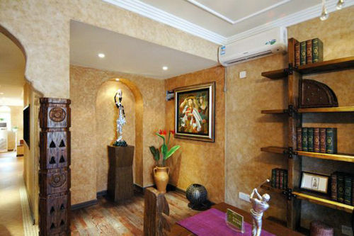 而且是馬來漆在辦公室裝飾設計、中式茶吧裝修裝飾、酒吧裝修裝飾、咖啡廳裝修裝飾、健身場所裝修裝飾、高爾夫球場裝修裝飾、滑雪場裝修裝飾、車友俱樂部裝修裝飾、幼兒園裝修裝飾、候車室裝修裝飾等工裝,或家庭裝修裝飾、家庭影院、別墅裝修裝飾等家裝中使用時,像找底一樣,用各類批刮工具進行批刮式操作,然后產生紋理、花紋等藝術效果和滑潤的質地和手感。
