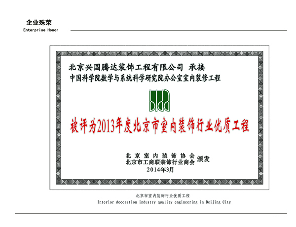 北京市室內(nèi)裝飾行業(yè)優(yōu)質(zhì)工程