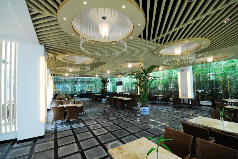 餐廳的裝修真可謂是別具一格,風(fēng)情萬種,這決定于業(yè)主所有的因素,如身份、角色、喜好、經(jīng)濟(jì)、文化等等,所以餐廳既可富麗堂皇,也可簡潔明快、還可中庸克己。并因角色的推進(jìn)而不斷改變,比如新婚的餐廳是浪漫、喜慶漫溢,而有了小孩的餐廳一定會萌意十足,在這種氣氛中,小孩的食欲大增,孩子長大成人,這種氛圍又會壓抑食欲,所以隨著孩子的成長需不斷地改變餐廳裝修裝飾的主旋律。當(dāng)然餐廳的實(shí)用功能誰都可以注意到的,根據(jù)自己的經(jīng)濟(jì)能力選擇基本的餐廳設(shè)備自不必多言。但是從設(shè)計(jì)的搭配和選材的角度來說,眾多購房者還會有許多的盲區(qū),比如餐廳的設(shè)計(jì)首先應(yīng)該與居室的總設(shè)計(jì)協(xié)調(diào)而又可以有一定的變幻,如餐廳要設(shè)計(jì)明朗輕快的主色調(diào),最適合的色彩是橙色及相同的姊妹色,且這兩種色彩具有刺激食欲的功能;如果是設(shè)計(jì)的高采光餐廳,就應(yīng)設(shè)置白色優(yōu)雅的簾幔,藍(lán)色的墻壁,就會彰顯浪漫,增進(jìn)食欲;若是餐廳本身采光良好,白色的背景墻才溫柔舒適,才能營造出清新優(yōu)雅的氛圍。另外,還可設(shè)計(jì)一些典雅的燈飾、擺放一些小飾物,特別是要恰到好處地?cái)[放一些綠色的盆花。比如,在紅色點(diǎn)綴的桌面上,擺放一束或一盆綠色植物,預(yù)示著溫暖中孕育新生命,蕩漾著春天般的感覺;如果是簡潔的餐桌上郁金香嬌艷地開放,又是多么愜意和溫馨……