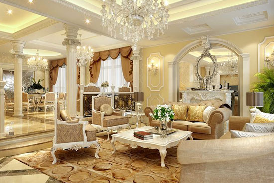 當(dāng)然,歐式風(fēng)格辦公裝修、賓館酒店裝修裝飾等工裝,或家庭裝修裝飾、別墅裝修裝飾等家裝中,濃郁氛圍的也是主次分明的,一般都會(huì)把深色的橡木或楓木家具、具有鮮艷色彩的布藝沙發(fā)等作為別墅裝修裝飾等家裝中客廳的主要角色,這也就是說(shuō)是不可缺少的。還有浪漫的羅馬簾、精美油畫(huà)、工藝精美的雕塑藝術(shù)品等,都是歐式風(fēng)格家裝或工裝中的主要、主導(dǎo)型軟裝飾元素,這些元素自然會(huì)隨小戶(hù)型、大戶(hù)型以及較大戶(hù)型的不同而在應(yīng)用上作增減選擇的。