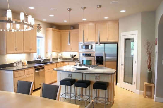 U型櫥柜的適用性,決定了廚房的寬大、方形等廚房結(jié)構(gòu),這種寬大的廚房,要保證兩排相對(duì)的物件中間,至少要有120cm的距離,這樣才能保證有足夠的空間供下廚操作。而島臺(tái)型櫥柜,是開(kāi)放性廚房或?qū)掗煹拇髲N房最適宜擺放的,島臺(tái)型櫥柜有更多的操作臺(tái)面和儲(chǔ)物空間,可以供多人同時(shí)在廚房操作,如,飯店、食堂等公共性廚房、大家族居住在一起的大廚房等。島臺(tái)型櫥柜,還可根據(jù)需要進(jìn)行擴(kuò)容,比如增加烤箱、爐灶等,不過(guò)在增加計(jì)劃實(shí)施前,還要考慮到是否有利于抽油煙機(jī)管道、電路和通風(fēng)管的連接,還得確保爐灶和水槽之間要有工作臺(tái)面。各工作臺(tái)面間,至少應(yīng)留出120cm的距離,供下廚操作和柜門、抽屜的開(kāi)啟等。